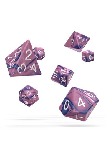 The Role-playing Game Sets consist of 7 different dice: D6, D4, 2x D10 (steps of 1 and steps of 10), D8, D20 and D12.